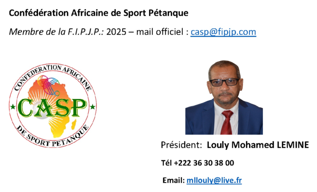 Dans ce cadre précis, M. Louly Mohamed Lemine, jusqu’ici Vice-Président de la CASP, assume désormais la responsabilité de conduire les affaires de la Confédération Africaine de Sport Pétanque, garantissant la stabilité institutionnelle et la continuité des engagements continentaux.