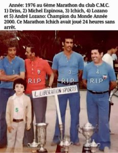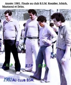 Album: Mohamed Ichich. Très bon joueur et Arbitre.{ Année: 1975: Vainqueur Championnat du Maroc en Triplettes et Sélectionné au Championnat Du Monde au Canada. Année: 1976: Vainqueur le Marathon du club C.M.C et Sélectionné au championnat du Monde à Monaco }.