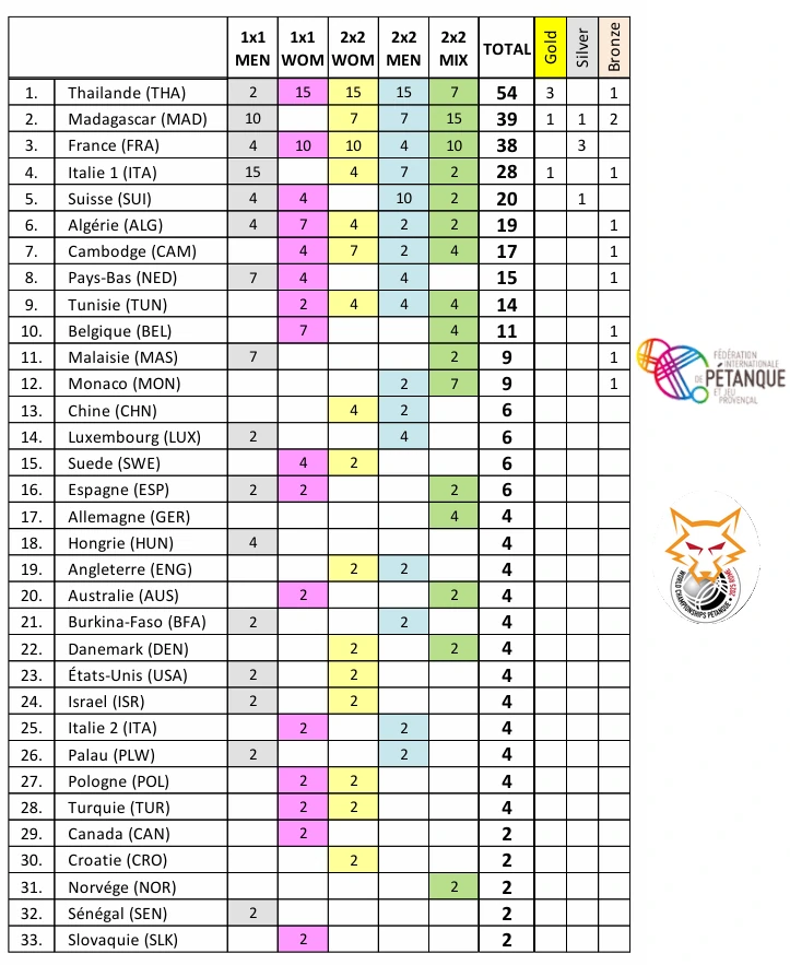 Classement des nations (33 sur 50) après le système suisse – 6ᵉ édition du Championnat du monde, Rome 2025 (points et médailles)